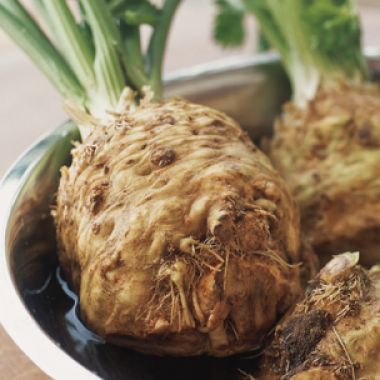 Buy firm, medium-size roots, about the size of small grapefruits, that feel heavy for their size and are free of bruising and soft spots. Tangled root ends are acceptable, as are any green stalks growing from the top. Celery root is available from early fall through early spring.
