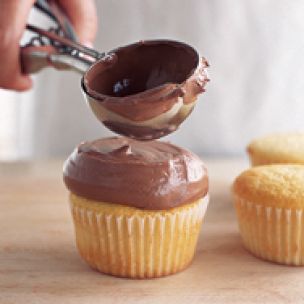 ICE CREAM SCOOP A spring-loaded ice cream scoop is a quick and easy way to top a cupcake with frosting. Use a scoop about