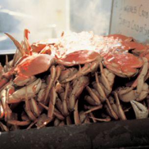 Ideally, buy live lobsters and crabs immediately before you plan to cook them, and go directly home from the market. When purchasing a whole cooked lobster, make sure that its tail curls, an indication that it was still alive when it was dropped into the cooking pot. If possible, avoid cooked crabmeat that has been frozen.