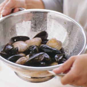 Always buy mollusks from reputable merchants who can vouch that they come from safe, clean, unpolluted waters. Fresh live mollusks in the shell have a mild, sweet smell. Their shells should be closed tightly and feel heavy with water; do not buy any that remain open when touched. A strong fishy or ammonium odor indicates they are no longer fresh, so pass them by.