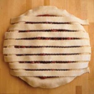 Weaving pastry strips together into a lattice on top of a filled pie is a pretty way to create a decorative, golden crust. Leave the trimmed overhang of the bottom crust until the lattice is finished.