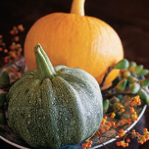 Arrange pumpkins and squashes on a decorative platter and tuck branches with autumnal berries beneath them. Fill out the arrangement with coordinating foliage and berries, keeping it airy to allow elements of the platter to show through.