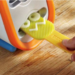 Cut out fun shapes from fresh fruit with the tool kit’s cutters. Eyes, mustaches, smiles—get creative!