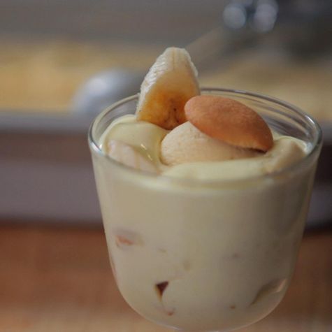 Top each parfait with a scoop of vanilla wafer ice cream, and garnish with 1 whole vanilla wafer and 3 caramelized banana slices. Serves 4.