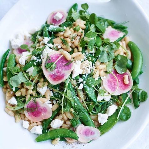 In this fresh take on white bean salad, sugar snap peas and radishes add crunch, while dill and chives lend bright flavor. Ricotta salata cheese contributes a salty note. A mandoline makes it easy to quickly and uniformly slice the radishes.