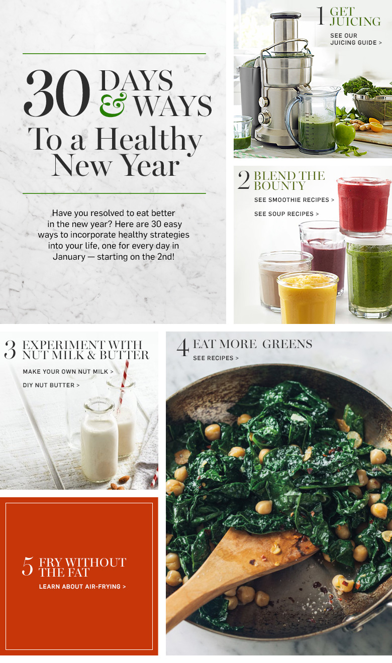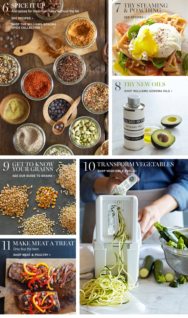 s See Our Juicing Guide See Smoothie Recipes See Soup Recipes Make Your Own Nut Milk DIY Nut Butter Eat More Greens - See Recipes Learn About Air-Frying Spice It Up - See Recipes Shop the Williams Sonoma Spice Collection Steaming and Poaching - See Recipes Shop Williams Sonoma Oils See Our Guide to Grains Shop Meat & Poultry Shop Vegetable Tools Shop DIY Kits DIY Sauerkraut Make Your Own Yogurt Try Whole Grain Recipes Make Your Own Dressing - See How Meatless Monday - Try These Meatless Mains Shop Indoor Gardening Savor More Seafood - Try Our Recipes Resist Take Out - See Lunch Ideas Make Salad a Meal - See Recipes See Weeknight Recipes Brighten Up With Citrus - See More Tips & Ideas Use Your Grill - See Recipes Make Vegetables Center Stage - See Our Recipes See Bean Recipes Try International Recipes Shop Nonstick Cookware More Snack Ideas Make Time for Breakfast - Our Favorite Recipes Shop Soma Water Filtration