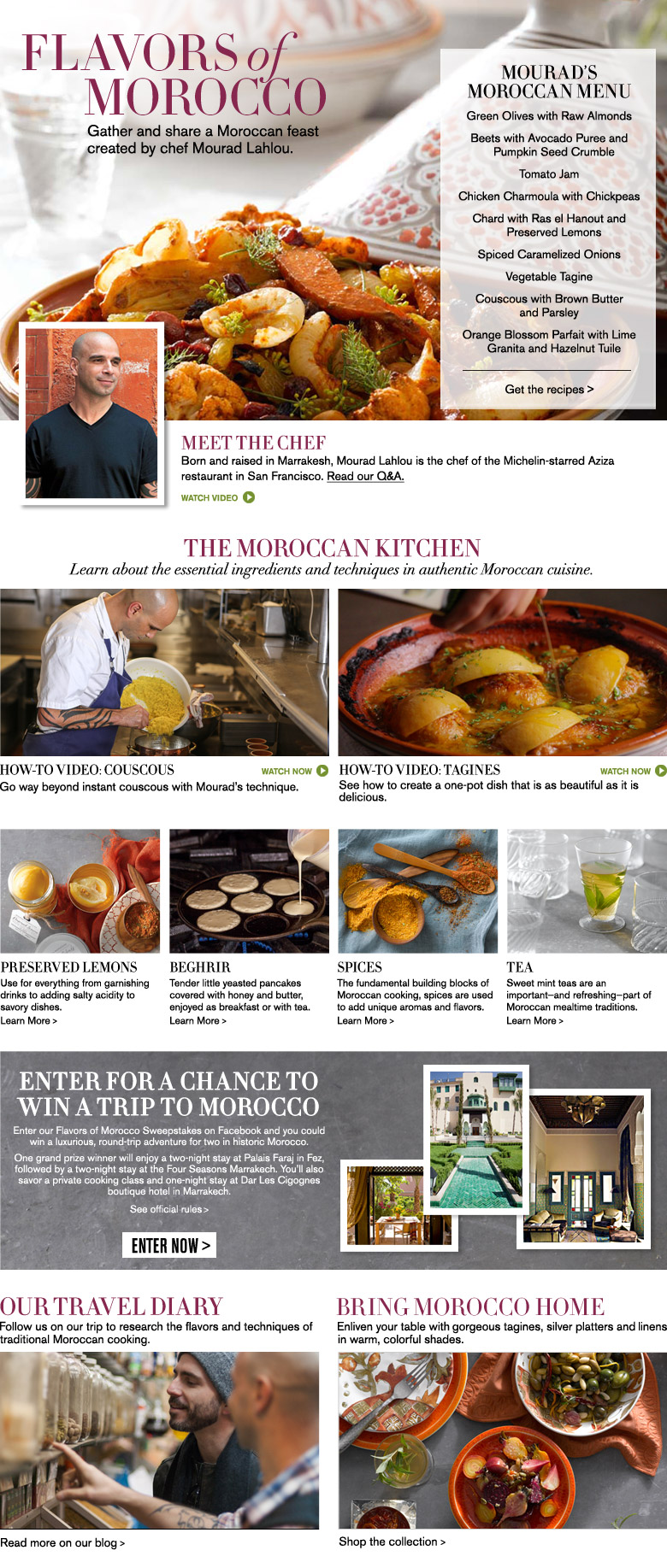 Get the Recipes Read Our Q&A Meet the Chef: Watch Video How-to Video: Couscous How-to Video: Tagines Preserved Lemons Beghrir Spices Tea See Official Rules Enter Now Read More on our Blog Shop the Collection