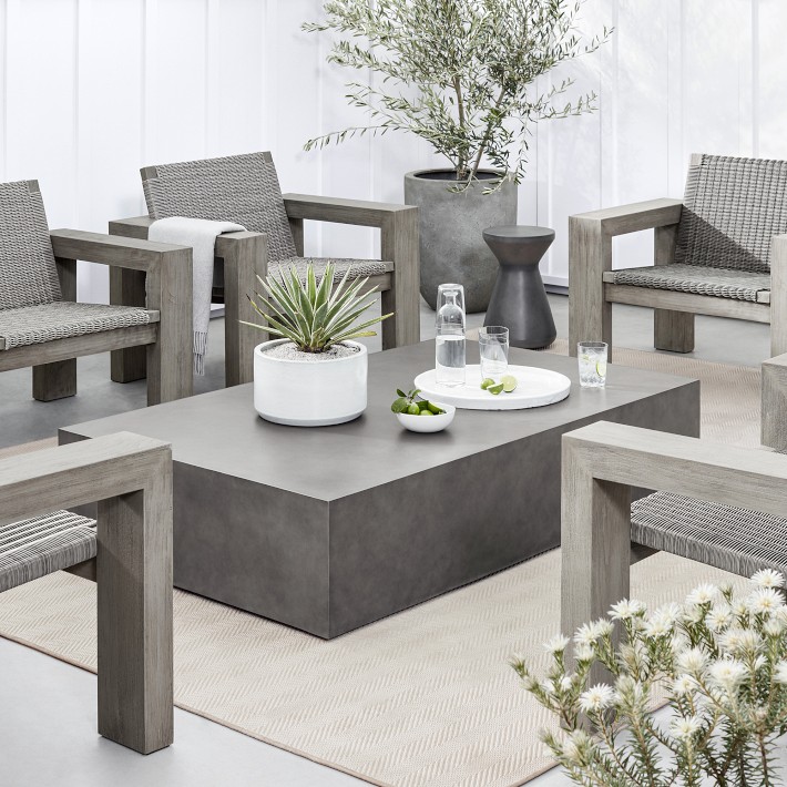 The Blinde Design rectangular-shaped coffee table combines style and utility, with classic, clean lines and strong and durable construction that provide a chic and functional solution for a myriad of outdoor spaces and indoor rooms.