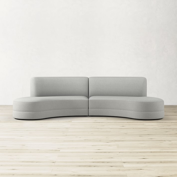 - This two-piece sofa sectional consists of right and left one-arm bumper sofas.