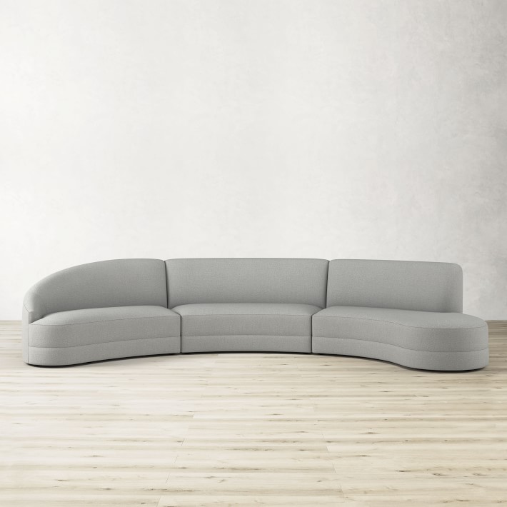 - This three-piece sofa sectional consists of a a one-arm bumper sofa, an armless concave sofa and a one-arm sofa.