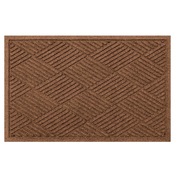Add style and softness underfoot with our all-weather rug that blends a resilient recycled PET polyester weave with a diamond pattern. Perfect for entryways, mudrooms, porches and decks, the molded rug traps dirt and water without fading, molding or breaking down underfoot. Made with an eco-friendly recycled rubber backing, it's a high-functioning mat that doesn't sacrifice style.