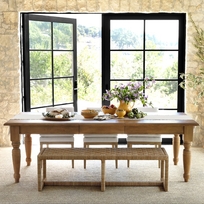 - Two 22" drop-in leaves extend table to 94"L or 116"L.