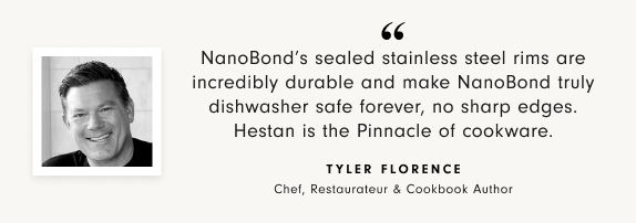Hestan pushes the boundaries of cookware innovation with NanoBond® technology. The patented NanoBond™ surface – more than 2,000 nano layers of superdense titanium ceramic – creates cookware that is four times as durable as traditional stainless steel. Exceedingly resistant to scratches, this stockpot will maintain its beauty and performance for a lifetime.