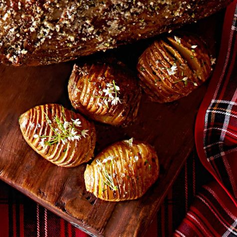 Named after the Stockholm restaurant that first introduced them, Hasselback potatoes are fancy-looking baked potatoes with decorative slices on top, and they’re simple to make. To prevent oxidation, slice them just before roasting. These tender, buttery potatoes are the perfect accompaniment to a prime rib roast.