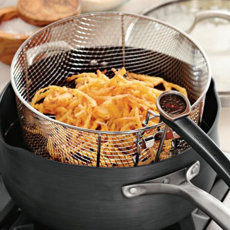 Use a mandoline to cut the onions into narrow strips. Serve these crispy fried onions alongside our barbecue sloppy Joes.