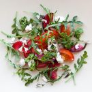Heirloom Tomato and Plum Salad with Raspberry Vinaigrette, Goat Cheese and Arugula Pesto