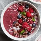 Acai bowls are the hottest trend to hit the breakfast table in years, and with good reason. Frozen acai puree, which is made from a tropical fruit that grows in South America, is the perfect base for a thick, smoothie-like puree that’s delicious topped with any sort of fresh fruit. Look for the puree in the freezer section of well-stocked grocers and health food stores. If you don’t have toasted coconut flakes on hand, you can toast your own by spreading them on a baking sheet and toasting at 350°F (180°C) until lightly browned, about 4 minutes.