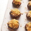 Make the topping: Heat the oil in a skillet over medium-high heat. Add the breadcrumbs and garlic and toast until the panko is golden, stirring frequently, 1 to 2 minutes, reducing the heat so the garlic doesn’t burn. Transfer to a bowl and stir in the achar masala and Pecorino Romano. Fill each mushroom cap with a heaping tsp. of stuffing, then add the panko topping. Bake until the topping is golden, about 20 minutes. Serve warm. Serves 4 to 6.