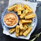 Crispy bites of fried polenta known as milho frito in Portugal originated on the island of Madeira and are a favorite accompaniment to espetada, or grilled meat skewers. For a healthier take, we cook the polenta pieces in a Philips air fryer instead of deep-frying them. Serve them with pimentón aioli for dipping for the perfect accompaniment to a glass of Portuguese wine.