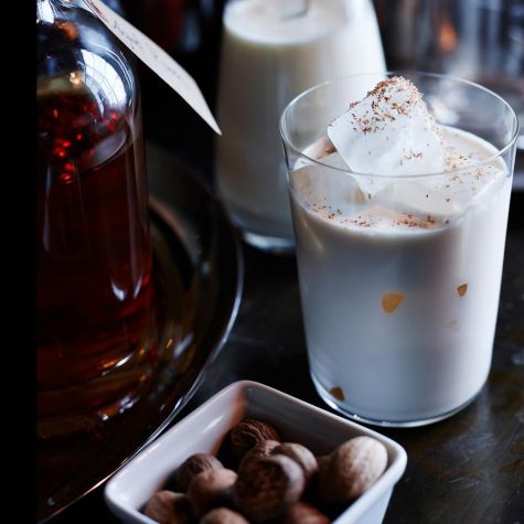 Old-fashioned milk punches, which combine dairy and some kind of alcohol (often rum), have been making something of a comeback during the recent cocktail renaissance. Here, allspice dram and nutmeg give milk punch a holiday flair. St. Elizabeth allspice dram is stocked at most well-stocked liquor stores.