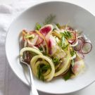 This refreshing salad is most colorful when made with a watermelon radish, but you can substitute two red radishes if watermelon radishes aren’t available.