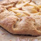 On a lightly floured work surface, roll out the dough into a 15- to 16-inch round about 1/4 inch thick. Fold the dough into quarters and unfold it onto the prepared baking sheet. Arrange the apples in the center of the dough, leaving a 3-inch border uncovered. Fold the dough edges over the apples, loosely pleating the dough and leaving the galette open in the center.