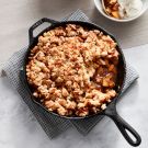 We’ve given the classic apple pie a rustic twist for Thanksgiving—the pie crust crumble is grain free and you won’t taste the difference! It’s less fussy to make than a regular crust because you simply roll out the dough and tear it into pieces, then arrange on top of the pie. Feel free to swap the almond flour for another nut-based flour such as hazelnut. This dessert is not only grain free but we’ve also eliminated the dairy, so it’s perfect for everyone at your gathering.
