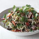 This sophisticated version of chow mein has been reinvented as a spicy noodle salad. The flavors are best when the dish is served at room temperature, making it an ideal candidate for a picnic. Complete the menu with sliced cucumbers tossed with a dressing of rice vinegar, Asian sesame oil and sugar, and accompany with ice-cold Japanese beer.