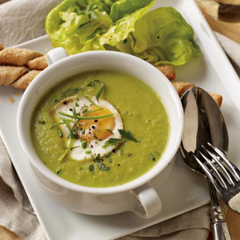 Capture the essence of spring with this beautiful soup, which combines pureed asparagus with baby spinach, topped with a poached egg and garden-fresh herbs. Our Cuisinart soup maker streamlines preparation.