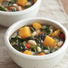 Succulent white beans, sweet winter squash and bright chard simmer together in this meatless main-course soup. It’s the perfect dish to make in the fall when the hard-shelled squashes appear at the market. Serve with hunks of hearty bread.