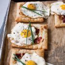 When the author was testing this recipe, she had the idea to crack an egg on top of each tart and then bake them together. The results were a bit of a disaster, to say the least. In the end, she fried the eggs separately and placed them on top of the baked tarts, which is easy and very pretty, too. Make these for a special brunch, especially if you want to impress your friends or in-laws