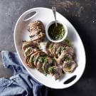 When husband-and-wife team Chris Lanier and Dana McClure, co-owners of Ravenwood, a pop-up farm shop and dinner series housed in a renovated 19th-century barn in Hudson Valley, New York, hosted a harvest-themed dinner with Williams Sonoma, Lanier dreamed up this showstopping main course. Turkey thighs are wrapped in bacon and served with a salsa verde full of fresh herbs for the moistest, most flavorful turkey ever. Here we cook the turkey in a smoker for maximum flavor, but you could also cook the thighs in the oven at the same temperature if you like. Don't forget to ask your butcher to debone the turkey thighs for you.
