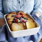 When fresh berries arrive at your farmers’ market, whip up a batch of this French toast for brunch. The recipe comes to us from Gaby Dalkin, cookbook author and founder of the site What’s Gaby Cooking. She gives thick slices of brioche a quick soak in a sweet egg custard that’s infused with brown sugar, vanilla bean paste and cinnamon, then bakes the bread until it’s tender in the center and lightly crisp on the edges. A classic yeast bread that’s rich with eggs and butter, brioche is a great choice for French toast because it’s soft (but not too soft) and soaks in just the right amount of the beaten egg mixture.