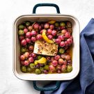 This Greek-inspired recipe is easy to prepare and makes an impressive appetizer. A whole block of feta is baked in the oven, where the cheese softens and turns wonderfully creamy—perfect for spreading on crusty bread or crisp crackers. Red grapes roast alongside and become intensely sweet and caramelized. Green olives lend briny notes to the dish, while a dash of sumac adds floral, citrusy flavor.