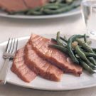 Slice the ham and arrange on individual plates with the green beans. Let the remaining ham cool, then store for later use (see note above). Serves 6 to 8; makes about 8 cups (5 lb.) sliced or cubed ham total.
