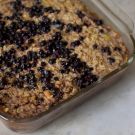 This no-fuss baked oatmeal comes together quickly and allows for endless variations to make it your own. Try substituting different berries or nuts or use natural cane sugar in place of the maple syrup. Any leftovers reheat nicely the next day.