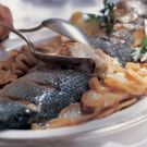 Transfer the fish and vegetables to a platter. Fillet the fish and divide evenly among warmed plates. Accompany each serving with some of the potatoes and onions. Offer the head(s) to any connoisseurs at your table who wish to pick at the delicate meat. Pass the olive oil bottle at the table. Serves 4.