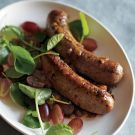 Divide the sausages among warm individual plates, spoon some of the braising liquid around the sausages, and top with the grapes and watercress. Serve immediately. Serves 4.
