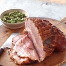 Balsamic-Glazed Ham with Parsley-Cornichon Gremolata