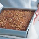 Bake until a toothpick inserted into the center comes out clean, 35 to 40 minutes. Let cool completely in the pan on a wire rack. Cut into squares and serve. Makes one 9-inch square cake.