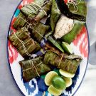 Transfer the banana leaf packets to individual plates and carefully open them. Serve immediately, passing the coconut-cilantro sauce alongside. Serves 6.
