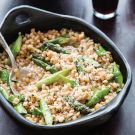 Here, barley is cooked in the same manner as Arborio rice in risotto—warm liquid is slowly added to the toasted grains, which results in a creamy consistency. Asparagus is the perfect addition in spring, but you can vary the recipe using other seasonal vegetables, such zucchini in summer and delicata squash in the winter.