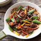 - 1 lb. (500 g) flank steak, thinly sliced, then cut into 1-inch (2.5-cm) pieces