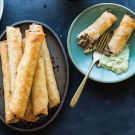 Beef and Monterey Jack Taquitos with Avocado Crema