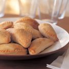 Place a generous tablespoonful of the filling in the center of each dough round. Lift the edges of each round so they meet in the center, compacting the filling. Firmly crimp the edges and transfer the empanadas to a prepared sheet. Press the top edges with a fork. Lightly brush the tops of the empanadas with the egg mixture. Bake until golden brown, about 30 minutes. Makes about 24 empanadas.