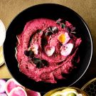 Although we love classic hummus, it’s also fun to add some creative variations to this Middle Eastern puree of chickpeas, tahini, garlic and olive oil. In our twist on tradition, we blend in roasted beets, which impart earthy sweetness and a gorgeous crimson color. Serve this eye-catching dip with Marinated Olives with Lemon Whipped Ricotta, pita bread, pita chips, crudités—or all of the above.