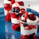 Just before serving, garnish the trifle with whole berries and cherries. Serves 6.