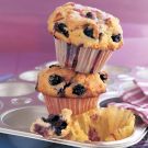 Add the milk mixture, melted butter and blueberries to the flour mixture. Using a rubber spatula, stir gently until the ingredients are just blended.