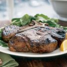 Transfer the steak to a cutting board and season generously with pepper. Garnish with lemon wedges and the arugula and serve immediately. Serves 2.