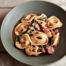 To prepare the collard greens, submerge the greens in a large bowl of water and swish them around vigorously to remove the grit. Drain the greens, then repeat 2 more times (collards can be very dirty). In a large pot, combine the ham hocks and stock. Add water if needed to cover the ham hocks. Bring to a boil over high heat, then reduce the heat to medium-low and simmer until the meat just starts to pull away from the bone, about 30 minutes. Add the red pepper flakes and greens to the pot, increase the heat to medium-high and cook until the greens are tender, about 1 hour. You will need 2 cups (6 oz./185 g) cooked greens for the tortellini recipe.